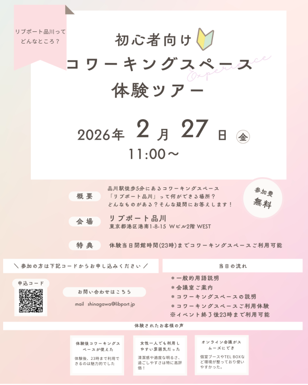 品川駅徒歩5分にあるコワーキングスペース「リブポート品川」とは、何ができる場所?どんなものがある?そんな疑問にお答えする、無料体験イベントです。
