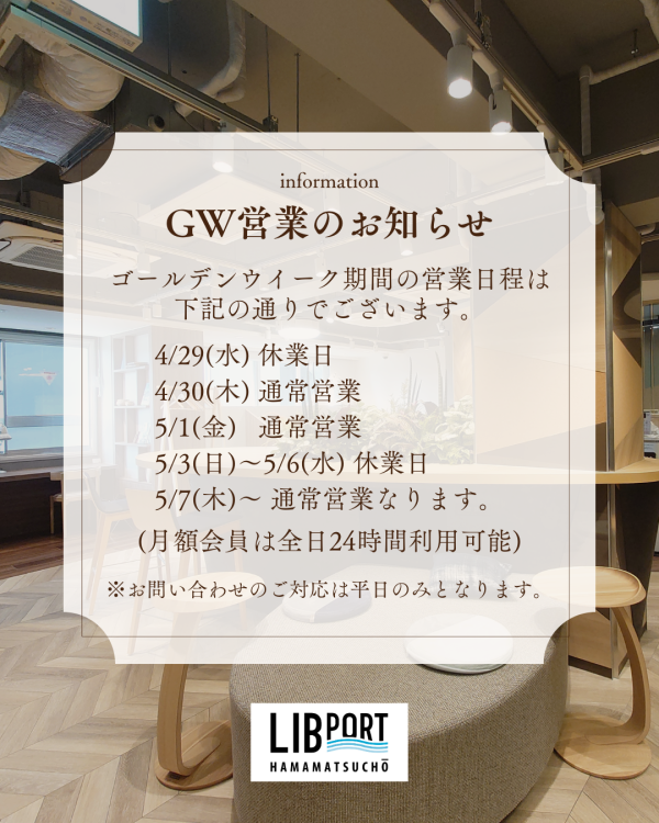 リブポートの2026年ゴールデンウィーク期間の営業について、お知らせいたします。