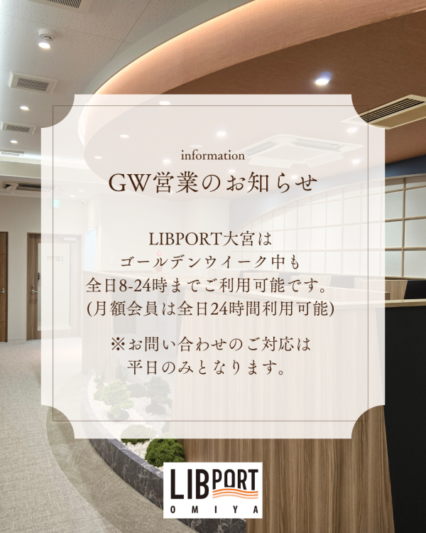 リブポート大宮はゴールデンウィーク期間も全日8時~24時ご利用可能です!